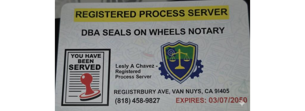 At Seals On Wheels, we provide professional, reliable, and legally compliant service of process. As a Registered and Bonded Process Server, we ensure your legal documents are handled with the highest level of integrity and delivered according to California state statutes. We are available 24/7 to handle urgent filings and difficult serves.
